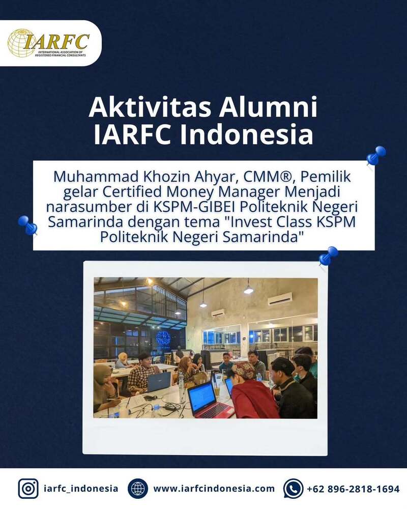 Alumni IARFC Indonesia, Muhammad Khozin Ahyar, CMM®, kembali menunjukkan kontribusinya dalam meningkatkan literasi keuangan di kalangan generasi muda. Pemegang gelar Certified Money Manager (CMM®) ini didapuk menjadi narasumber pada kegiatan Invest Class KSPM-GIBEI Politeknik Negeri Samarinda.